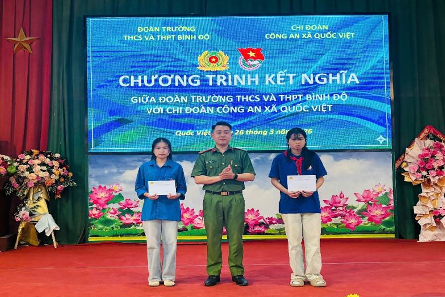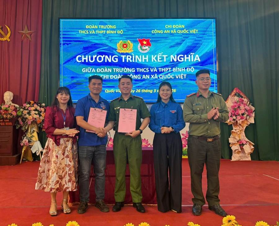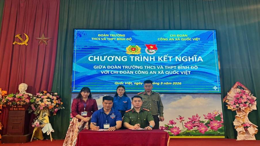 Hòa trong không khí thi đua sôi nổi của tuổi trẻ cả nước chào mừng kỷ niệm 95 năm Ngày thành lập Đoàn Thanh niên Cộng sản Hồ Chí Minh (26/3/1931 – 26/3/2026), sáng ngày 26/3, Chi đoàn Công an xã Quốc Việt đã tổ chức Lễ kết nghĩa với Chi đoàn Trường THCS và THPT Bình Độ.