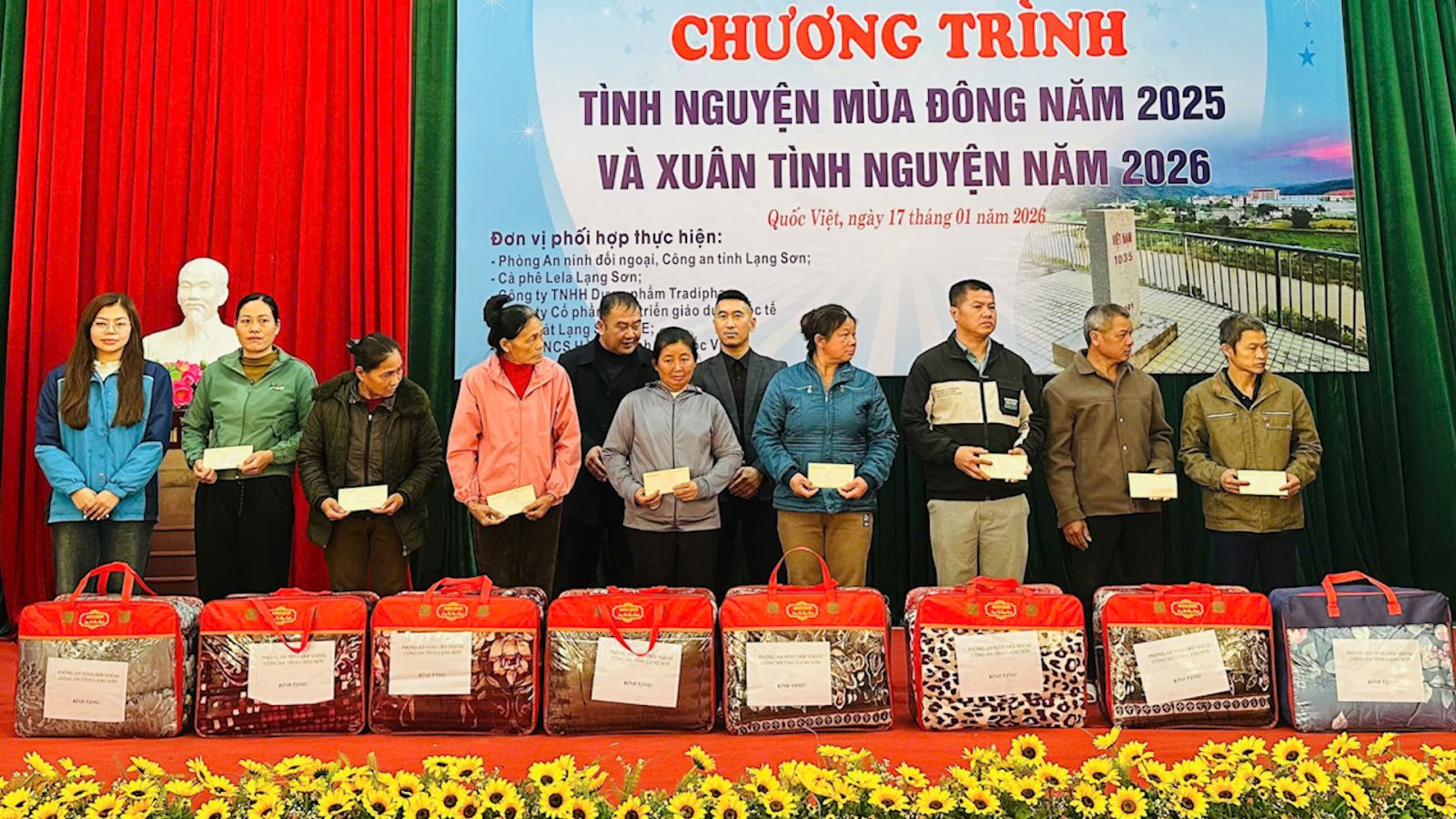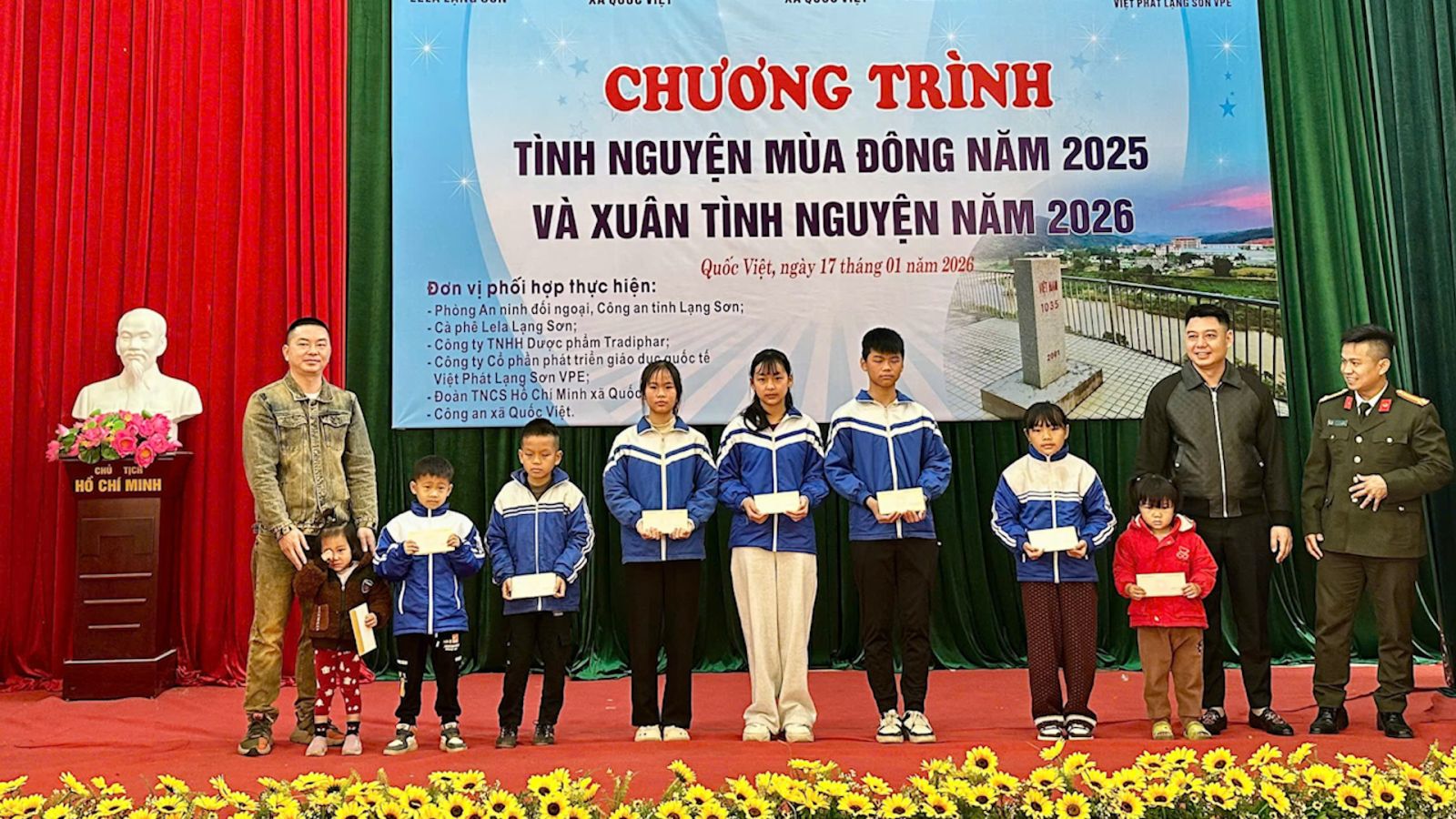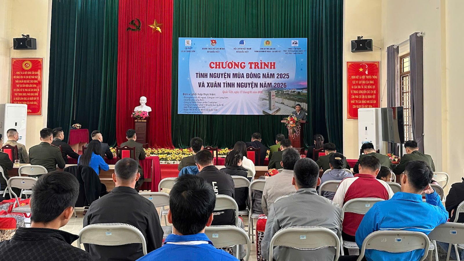 Sáng ngày 17/01, tại xã Quốc Việt, Phòng An ninh đối ngoại Công an tỉnh Lạng Sơn; Công ty cổ phần phát triển Giáo dục Việt Pháp Lạng Sơn, Cà phê Lê La Lạng Sơn phối hợp với Đoàn thanh niên cộng sản Hồ Chí Minh xã Quốc Việt tổ chức chương trình Tình nguyện mùa đông 2025, Xuân tình nguyện 2026. Dự chương trình có các đồng chí lãnh đạo: Đồng chí Nông Văn Lâm, Phó Chủ tịch UBND xã Quốc Việt, Đồng Chí Dương Văn Đức, Chủ tịch ủy ban MTTQ Việt Nam xã. Trung tá Ngô Minh Đức, Phó Trưởng phòng An ninh đối ngoại Công an tỉnh Lạng Sơn.