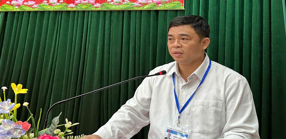 Đồng chí Nông Văn Lâm, Phó Chủ tịch UBND xã Quốc Việt, phát biểu tại chương trình