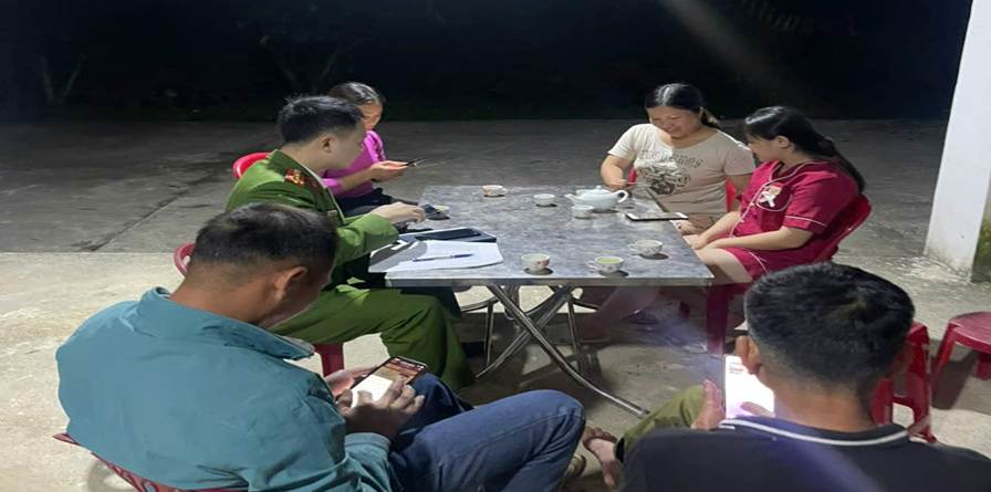 Cán bộ Công an xã Quốc Việt “đi từng ngõ, gõ từng nhà” hướng dẫn người dân tiếp cận, sử dụng các tiện ích số phục vụ đời sống
