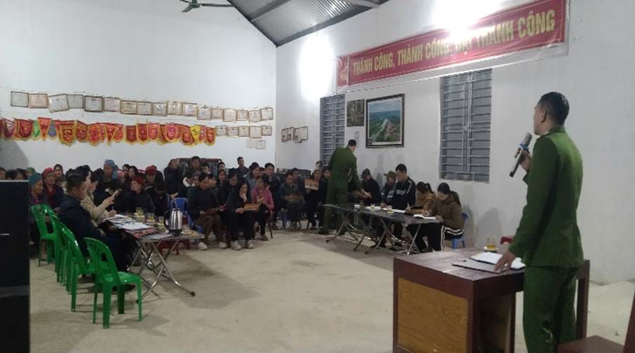 CBCS Công an xã tích cực lồng ghép tuyên truyền phổ biến, giáo dục pháp luật tại các cuộc họp thôn, sinh hoạt chi bộ thôn, tiếp xúc cử tri...
