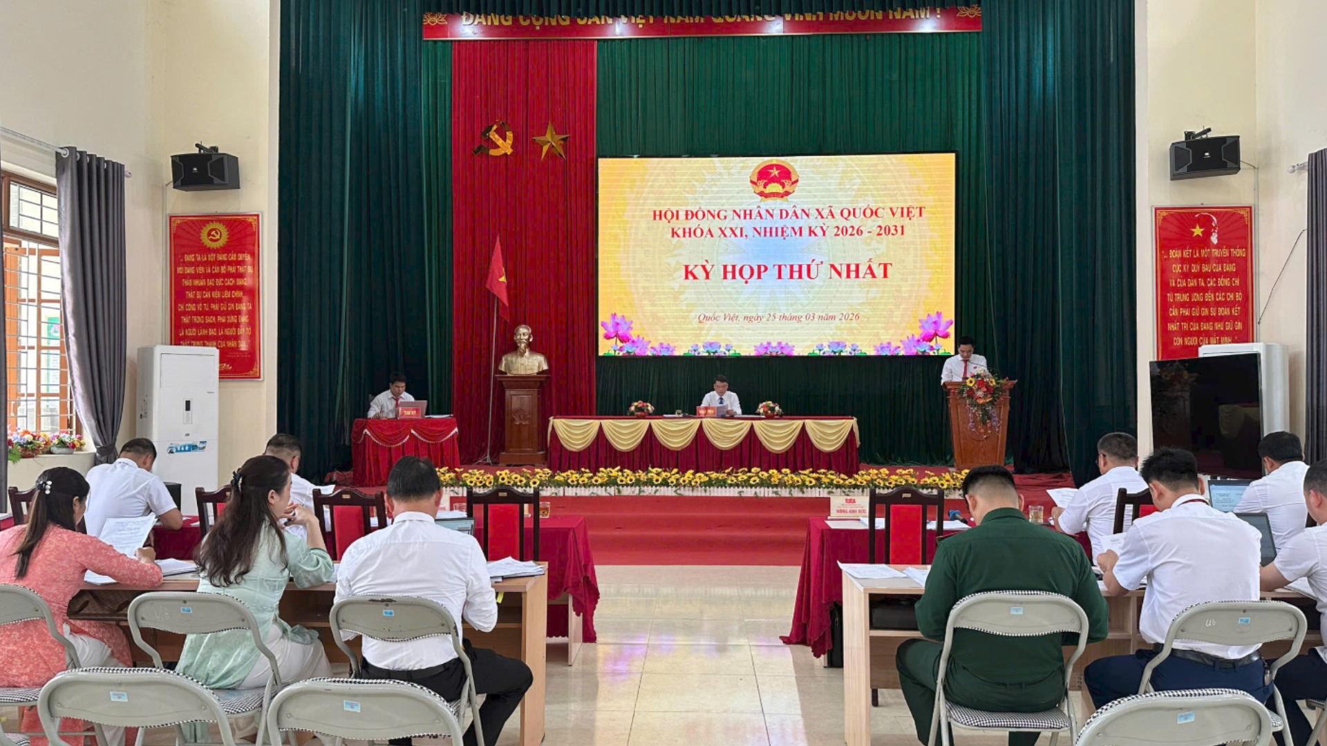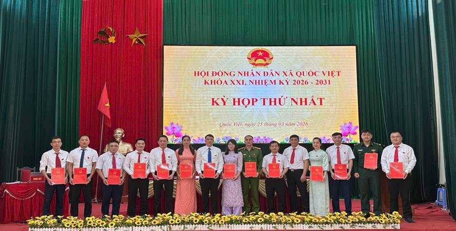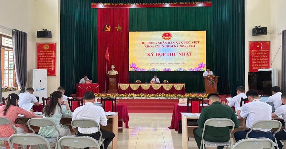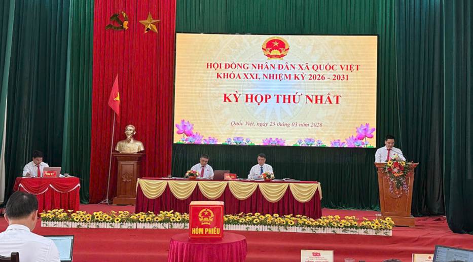 Chiều 25/3, Hội đồng nhân dân xã Quốc Việt tổ chức Kỳ họp thứ nhất, khóa XXI, nhiệm kỳ 2026 -2031 nhằm kiện toàn tổ chức bộ máy chính quyền sau cuộc bầu cử đại biểu Quốc hội khóa XVI và đại biểu HĐND các cấp nhiệm kỳ 2026 -2031.