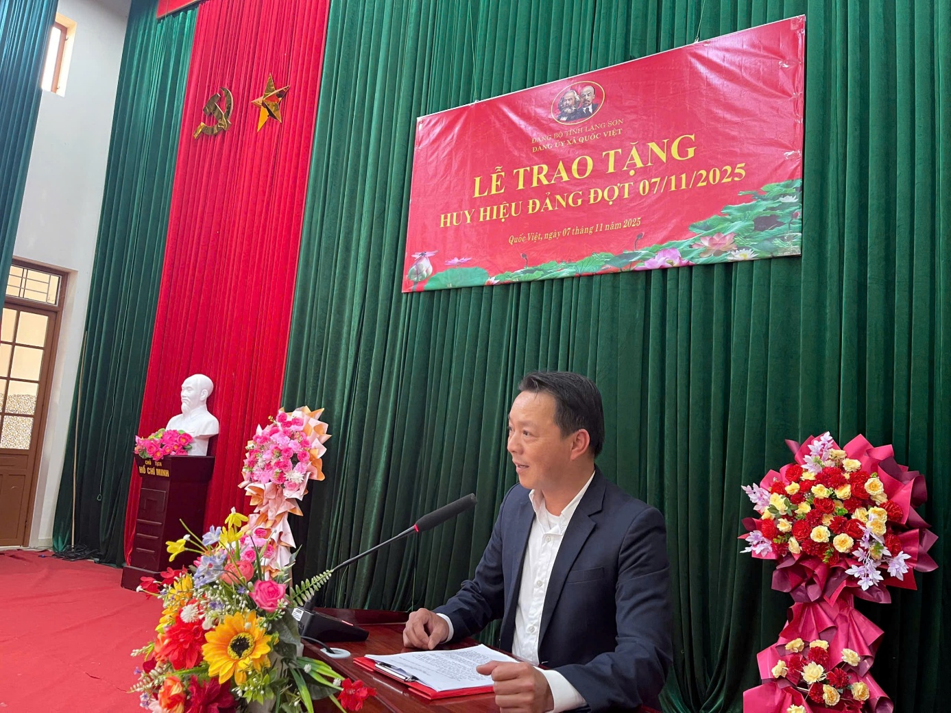 Ngày 07/11/2025, Đảng ủy xã Quốc Việt long trọng tổ chức Lễ trao tặng Huy hiệu đảng cho đảng viên đợt 07/11/2025. Dự buổi lễ có đồng chí Đinh Khắc Hiển - Phó Bí thư Thường trực Đảng ủy, các đồng chí Uỷ viên Ban Thường vụ Đảng uỷ, Uỷ viên Ban Chấp hành Đảng bộ xã; các đồng chí Bí thư chi bộ các thôn có đảng viên được tặng Huy hiệu Đảng.