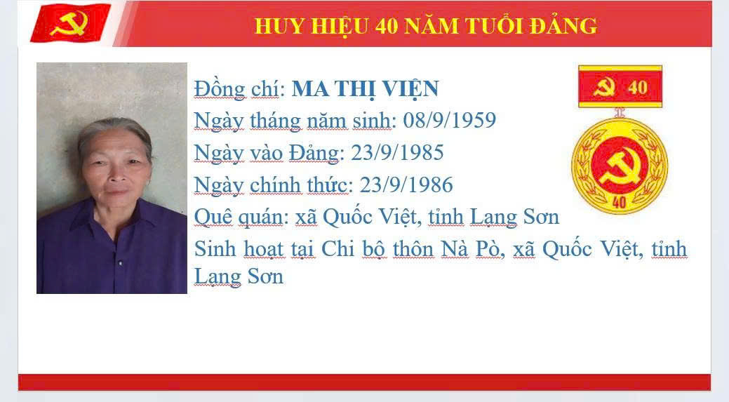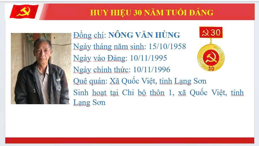 Dưới đây là thông tin 10 đảng viên được trao tặng Huy hiệu Đảng tại xã Quốc Việt:
