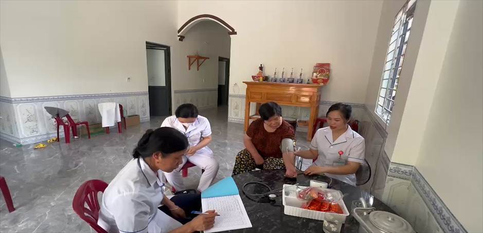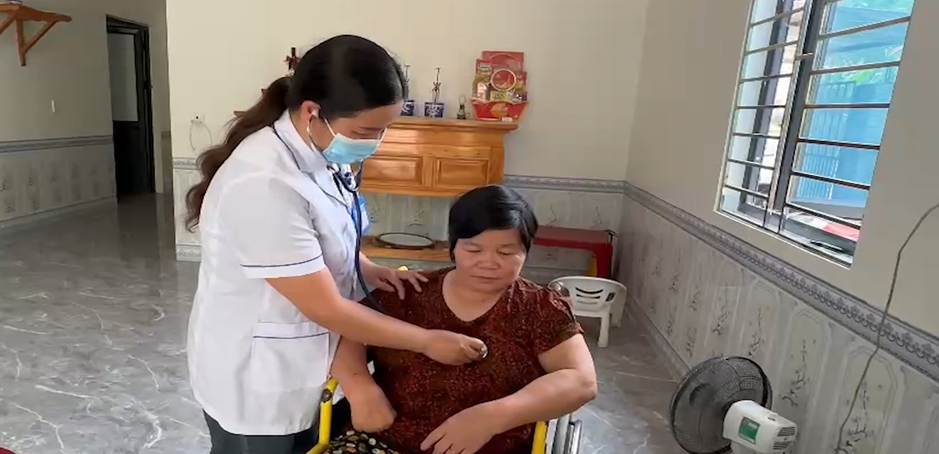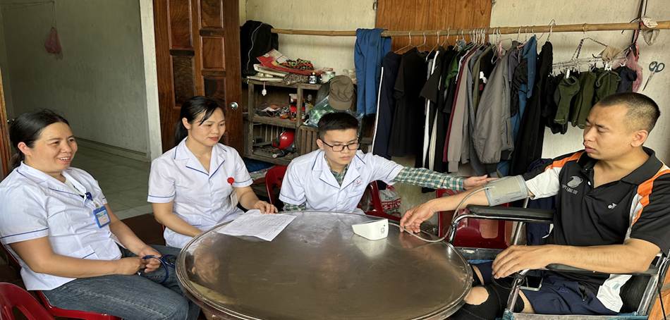 Cán bộ Y tế xã thăm khám bệnh tại nhà người cao tuổi và khuyết tật