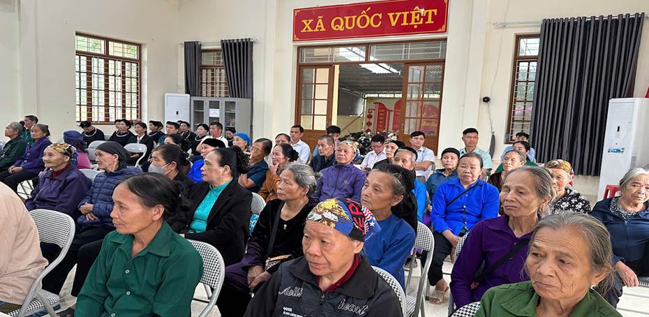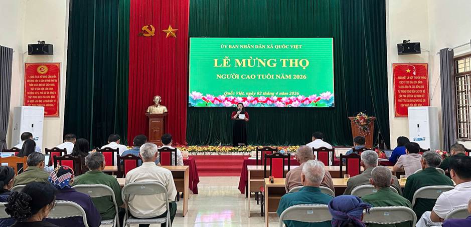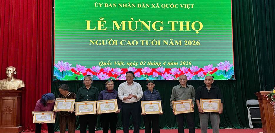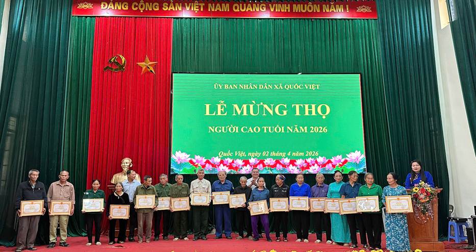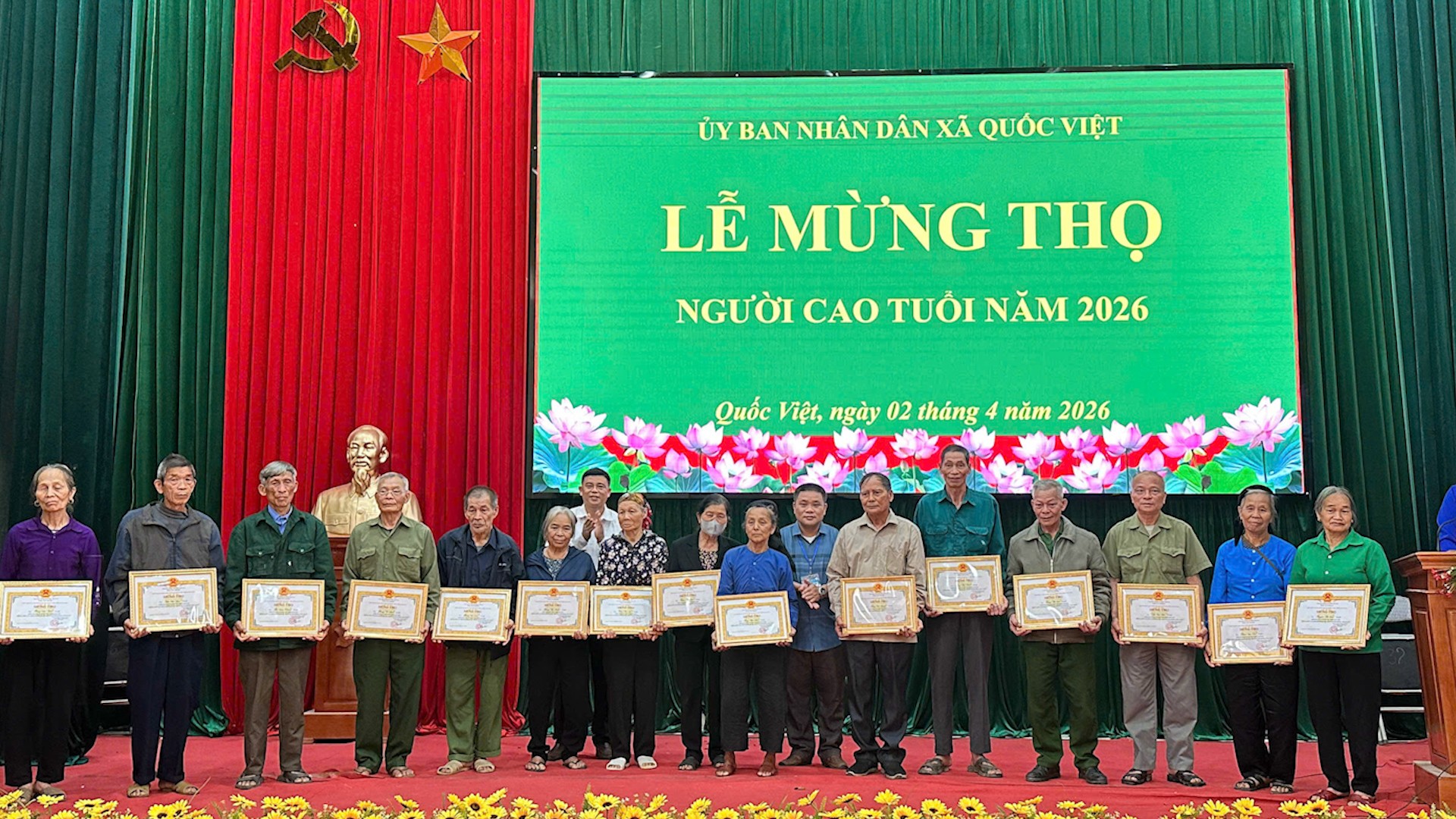 Năm 2026, trên địa bàn xã Quốc Việt có 68 cụ được chúc thọ, mừng thọ, trong đó độ tuổi từ 70, 75. 80 tuổi có 57 cụ, tuổi 85, 90. 95 tuổi có 10 cụ và 1 cụ tròn 100 tuổi.