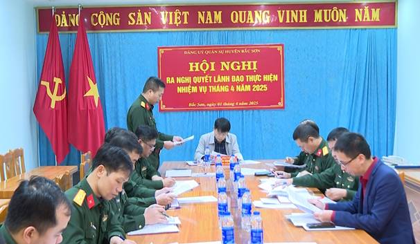 Chiều ngày 01/4/2025, Ban chỉ huy Quân sự huyện Bắc Sơn tổ chức Hội nghị ra nghị quyết lãnh đạo thực hiện nhiệm vụ tháng 4 năm 2025. Chủ trì cuộc họp có đồng chí Nguyễn Quang Huy, Ủy viên Ban chấp hành Đảng bộ tỉnh, Bí thư Huyện ủy, Bí thư  Đảng ủy Quân sự huyện; về phía tỉnh có Đại tá Nguyễn Văn Quyền, Đảng ủy viên, Đảng ủy quân sự tỉnh, Phó chỉ huy trưởng Bộ CHQS tỉnh; Các đồng chí Đảng ủy viên.